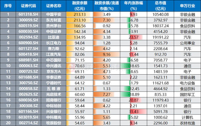 注:目前融资余额居前的个股(融资余额截至6月24日,其余数据截至6月25日)