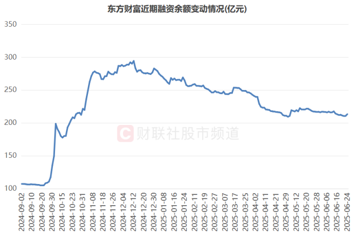 注:东方财富近期融资余额变动情况(截至6月24日数据)