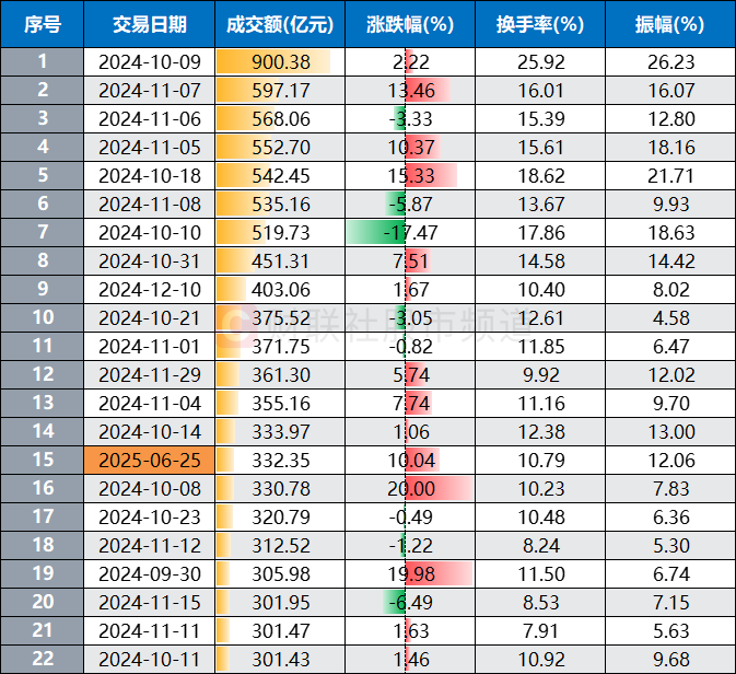 注:东方财富上市以来单日成交额超300亿元的22次纪录(截至6月25日收盘)