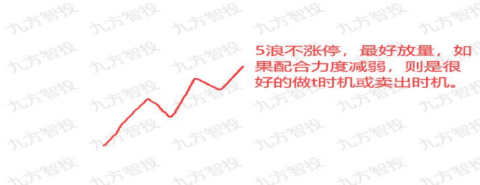 五浪冲高,当不能涨停,力度减弱,同时伴随放量最好。如果是封板了,就不算。同时如果五浪不清晰,也是不符合这种分时模型。