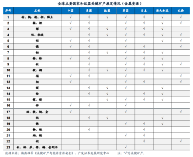 目前全球关键资源种类来看,中美资源、需求双强,俄印资源强于需求,南美、非洲、澳洲资源远强于需求,日韩英法德需求远强于资源。中国钨、铋、镓、锗、锑、钼等小金属产量占比全球领先。