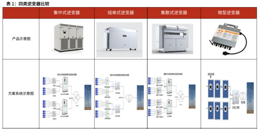 光伏逆变器产品主要分为四类:即集中式逆变器、集散式逆变器、组串式逆变器、微型逆变器。根据其特性不同各自对应不同的应用场景。区分的核心要素主要在于最大功率跟踪对应组件数量与体积重量的大小。