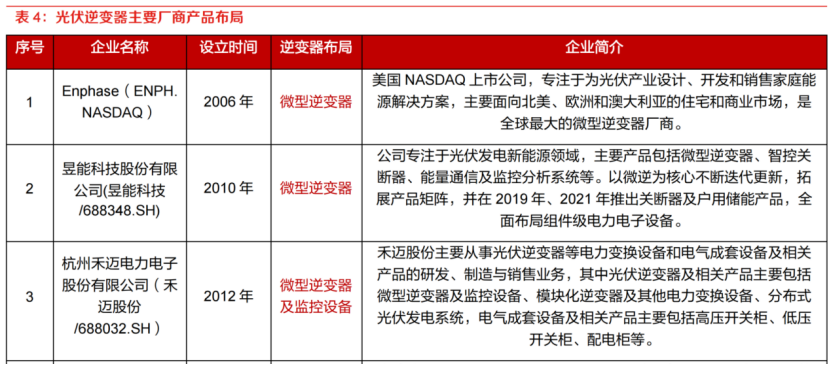 分析师表示,昱能科技微型逆变器多体架构迭代行业领先,是当前时间维度上全球唯一一家可同时规模性量产微型逆变器与组件级智控关断器的厂商。禾迈股份已经成为微型逆变器领域在技术、市场方面皆具有一定优势的企业之一,产品广泛应用于全球分布式光伏发电系统领域,客户遍及美洲、欧洲、亚洲等多个区域。