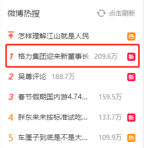 今日,“格力集团迎来新董事长”相关话题冲上热搜,引发网友热议。