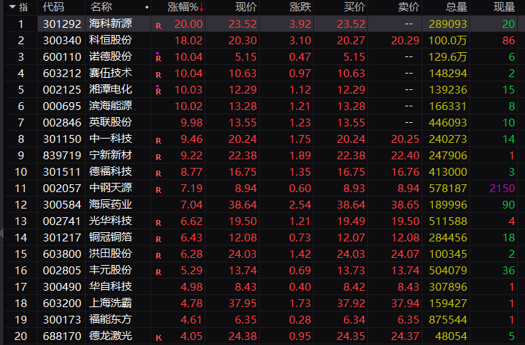 6月20日,A股最强势的板块还可能是固态电池。这个板块其实昨天早就有起势的信号,但由于大盘较弱,昨天的多头力量遭遇明显打压。今早,该板块卷土重来,海科新源连续两天20%涨停,诺德股份走出4连板,湘潭电化2连板、科恒股份、宁新新材、赛伍技术、滨海能源、英联股份等涨停或涨幅超过10%。
