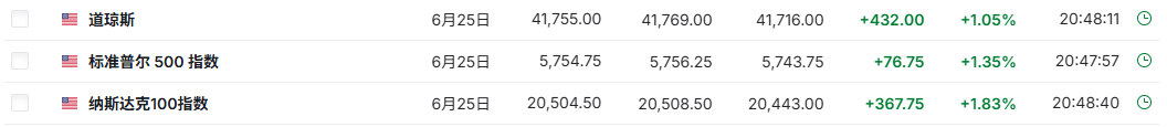 周一,华尔街股指期货均出现上涨。截至发稿,标普500指数期货上涨1.35%,道琼斯期货合约上涨1.05%,纳斯达克指数期货上涨1.83%,