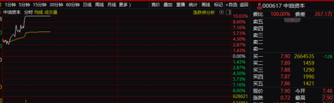 早盘,中油资本这只曾经的跨境支付龙头股,在稍作调整之后,直线封板,其封单一度突破300万手。2022年底,该股也因其所属金融企业昆仑银行而大涨。
