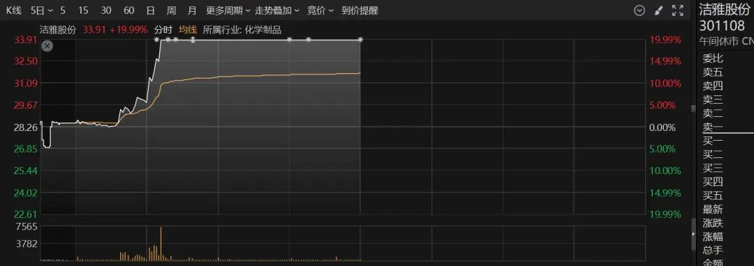 合成生物概念早间放量上攻,板块指数涨超2%,创年内新高,半日成交接近昨日全天成交。芭薇股份盘中触及30%涨停,川宁生物、洁雅股份均直线20cm封板,美农生物、福瑞达、金达威等亦涨势涨停或涨超10%。
