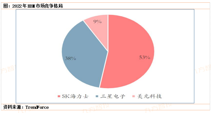 根据TrendForce,2022年三大原厂HBM市占率分别为SK海力士53%、三星电子约38%、美光约9%。