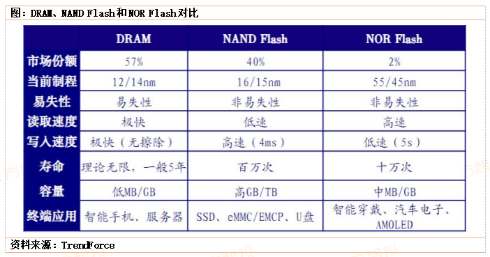 2、存储芯片江湖:DRAM与NAND芯片占据主流