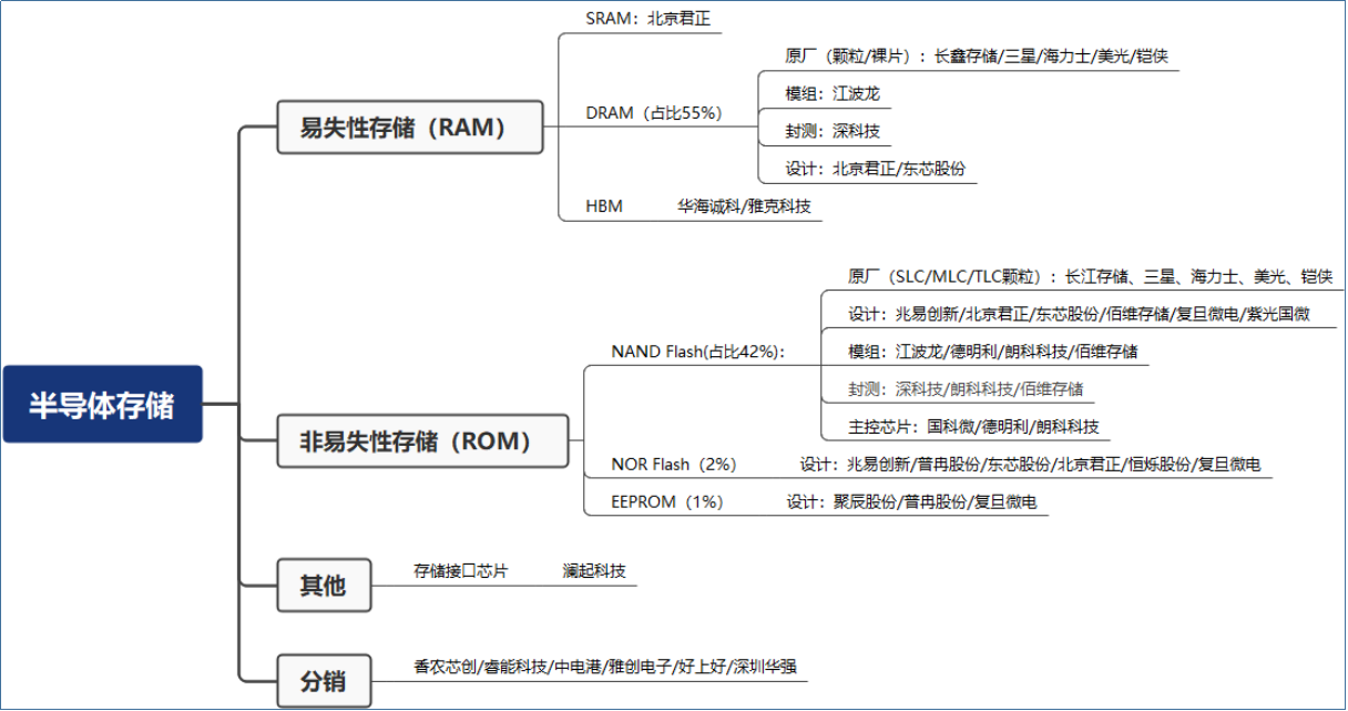 图:半导体存储产业链相关公司