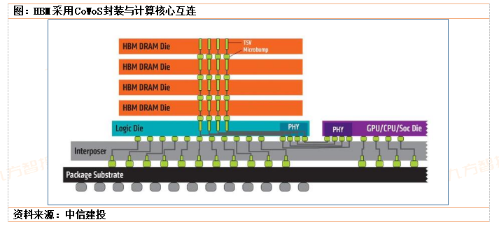 基于现有DRAM技术,堆叠多芯片,采用先进封装方式的高带宽存储器(HBM),正在成为人DRAM领域新宠。常见HBM层数4/8,即将达到16层。虽封装成本高,但适合高内存需求应用,如人工智能。存储性能是当下制约高性能计算的关键因素,从存储器到处理器,数据搬运会面临带宽和功耗的问题。为解决传统DRAM带宽较低的问题,本质上需要对单I/O数据速率和位宽进行提升。HBM由于采用了TSV、微凸块等技术,DRAM裸片、计算核心间实现了较短的信号传输路径、较高的I/O数据速率、高位宽和较低的I/O电压,因此具备高带宽、高存储密度、低功耗等优势。目前HBM供应链以海外厂商为主,部分国内厂商打入了海外存储/HBM供应链。国产HBM正处于0到1的突破期,HBM供应主要为韩系、美系厂商,国内能获得的HBM资源较少。