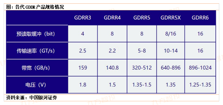 GDDR:是为了设计高端显卡而特别设计的高性能DDR存储器规格,其有专属的工作频率、时钟频率、电压。GDDR与一般DDR不能共用,时钟频率更高,发热量更小,一般用于面向需要极高吞吐量的数据密集型应用程序,例如图形相关应用程序、数据中心加速和AI。
