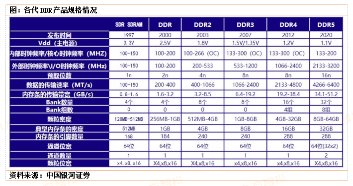 高传输速率和低功耗是未来DRAM发展的方向。可以看到,最新一代DDR5拥有超高频宽及低功耗优势,不仅传输速率能增加50%,工作电压亦由DDR4的1.2V下降至DDR5的1.1V,能够提高整体系统能源效率。此外,DDR5模块配置电源管理IC,直接单独在DIMM模块上执行电源控制,能够获得更加稳定的电源,并具备较佳的讯号完整性,进而优化能源效率。