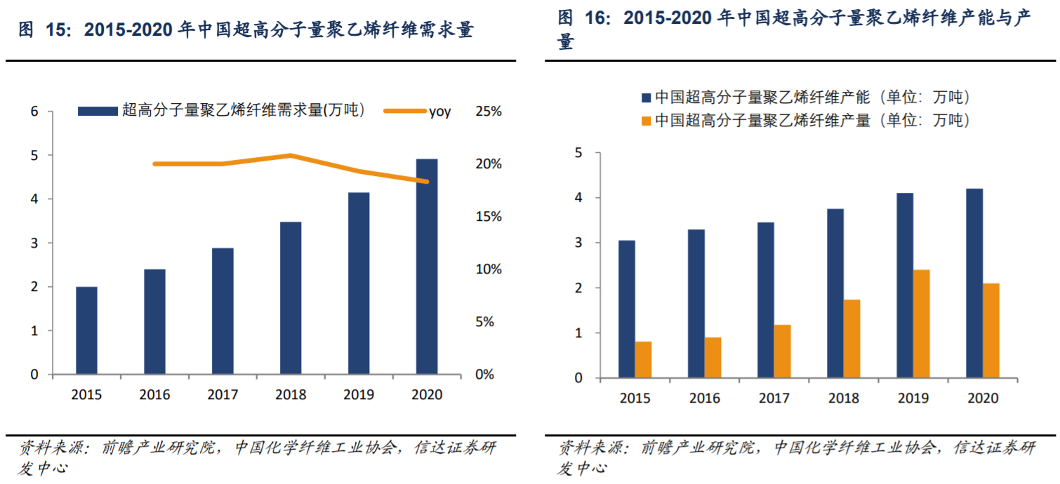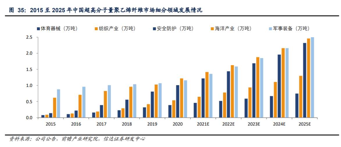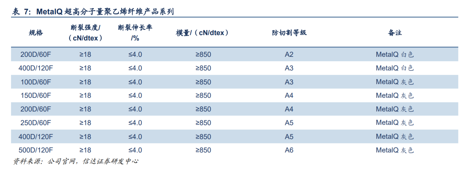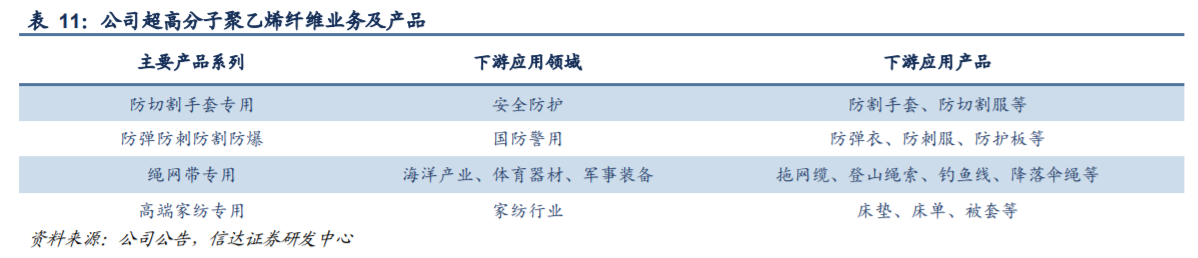 超高分子量聚乙烯纤维使用场景逐步拓宽。超高分子聚乙烯:需求缺口较大,技术研发要求高。公司全资子公司恒尚材料3000吨超高分子量聚乙烯纤维目前产能已满负荷运转,通过技术改造与产品升级,增加产能贡献。公司“年产12000吨超高分子量聚乙烯纤维项目”其中4800吨已于2024年9月正式开工,预计2025年9月有产能输出。