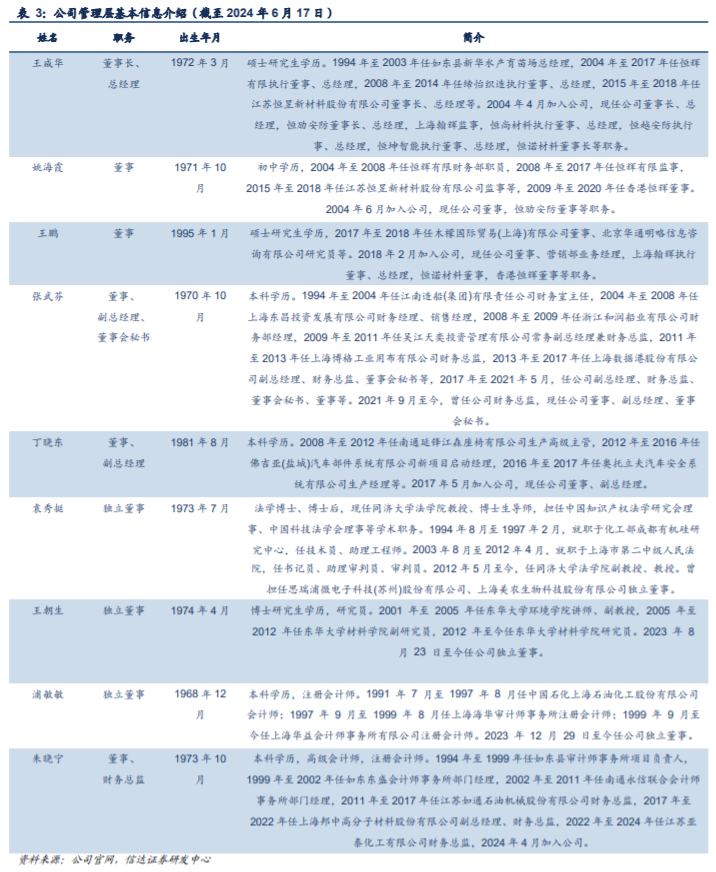 2022年公司成立恒越安防,同时进军高分子新材料领域,进一步布局全球化。2023年恒尚新材料3600吨超高分子量聚乙烯纤维产能释放,同年成立恒诺新材料、布局生物基可降解聚酯橡胶领域。