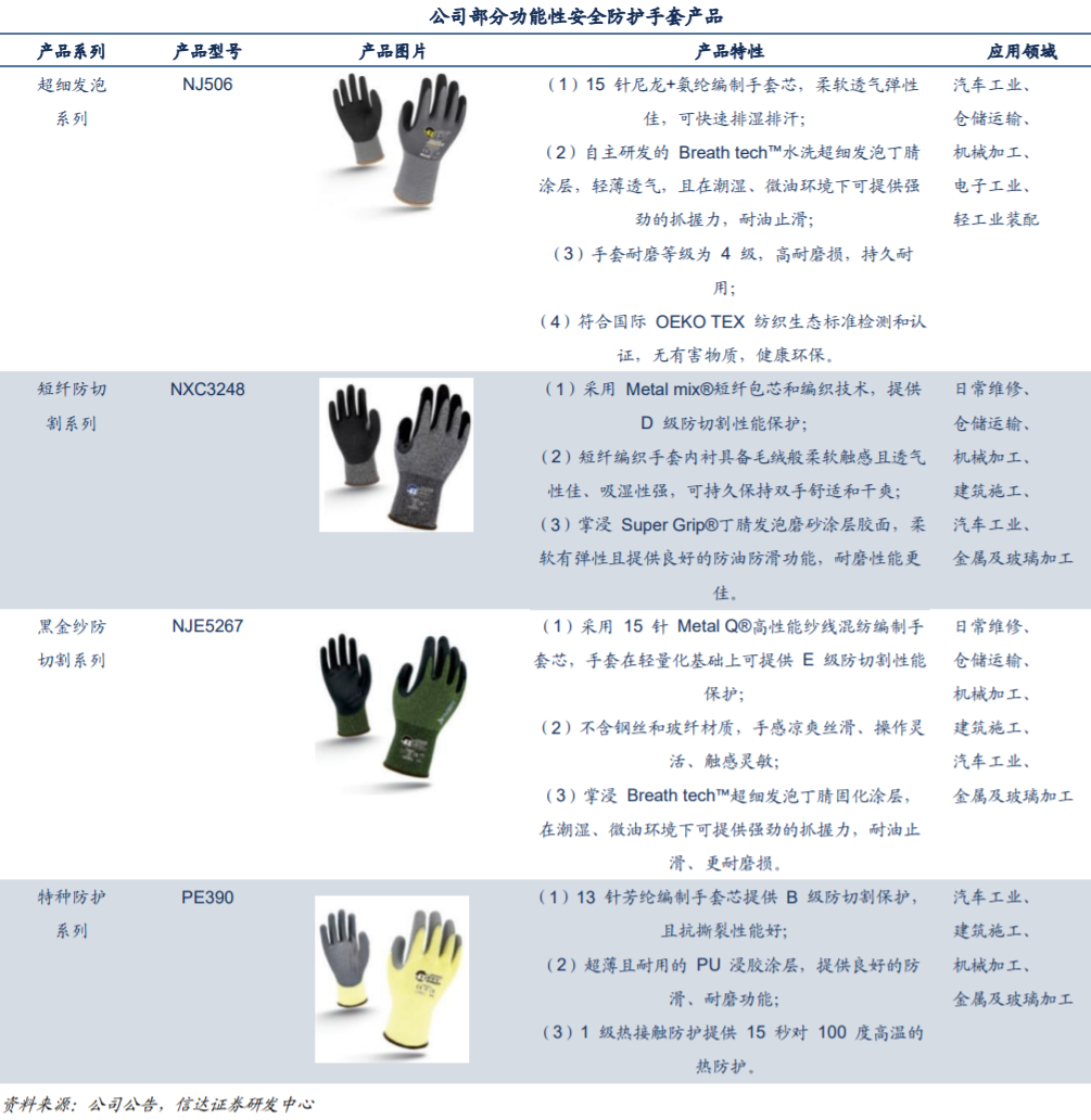 手套智能工厂推动降本增效,发行可转债用于新材料扩产。安防手套方面,随着用户安防意识普遍提高,未来行业成长性好,公司在国内市场的渗透率有望持续提升。公司在越南、国内设立智能化新工厂,有望推动降本增效、进一步扩展全球市场。新材料方面,公司发行可转债用于超高分子新材料三期4800吨产能建设,将推动新材料产能扩张,高分子新材料未来应用领域广泛、行业前景较好。