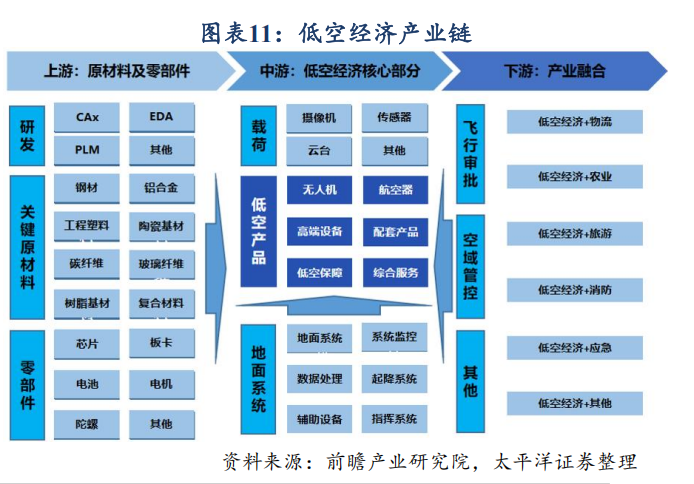 低空经济产业链四个核心板块,低空基础设施、低空飞行器制造、低空运营服务和低空飞行保障。