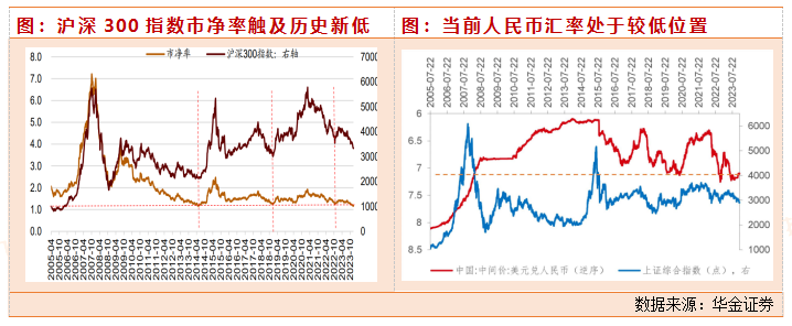 最后从估值来看,当前阶段的估计悲观预期计入充分,短期易上难下,估值和情绪指标处于历史低位:一是与经济预期最相关的上证50的PE(TTM)历史分位数(2005年起)当前仅为12.1%,处于历史低位;上证50换手率当前仅为9.6%左右,为历次市场大底时的最低水平。二是全部A股200日均线以上个股占比当前仅为23.8%左右,为历次市场大底时第五低水平。三是上证50ERP也处于历次市场大底时的水平。大类资产价格反映当前大概率就是底部:一是汇率来看,当前人民币汇率位置较低,且已出现企稳回升趋势;二是国债收益率来看,当前十年期国债收益率(2.58%)已处于历史低位,进一步下行空间有限;三是金银比价来看,当前看金银比价处于高位,已反映经济悲观预期,后续可能回落。