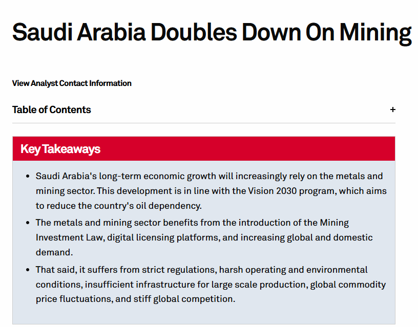 标普全球:金属与矿业投资将在沙特经济中发挥越来越重要作用