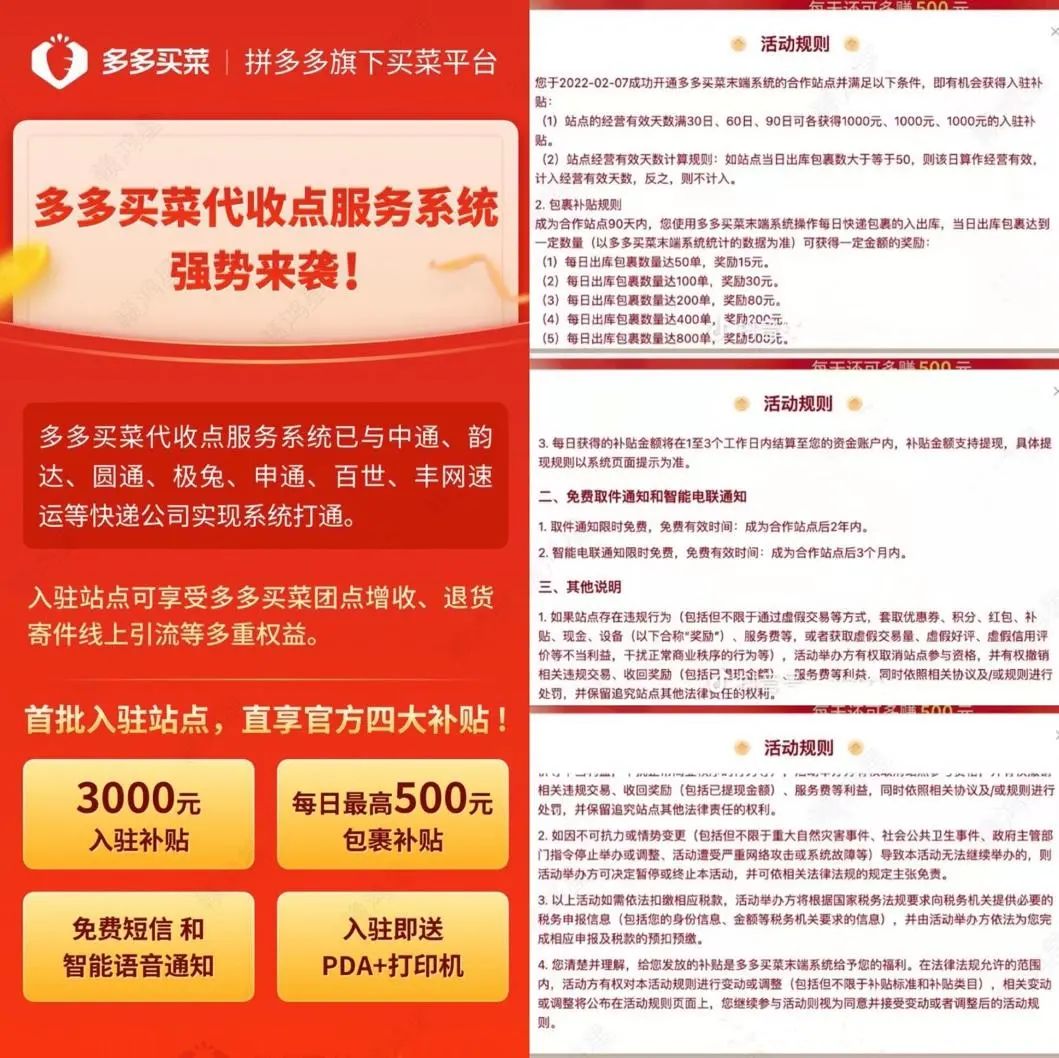 显然,诸如免费短信等多多买菜代收点的加盟补贴政策,都是针对末端市场目前的经营痛点所制定的。