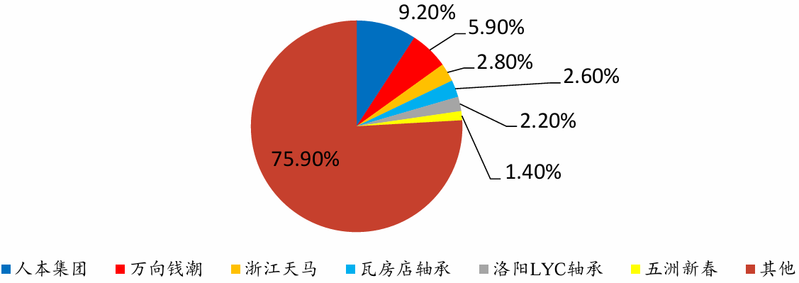 图:国内轴承行业集中度低,CR6仅为24.1%(2021年)