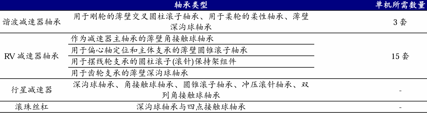 图:根据轴承配套关节零部件的不同对机器人轴承进行分类