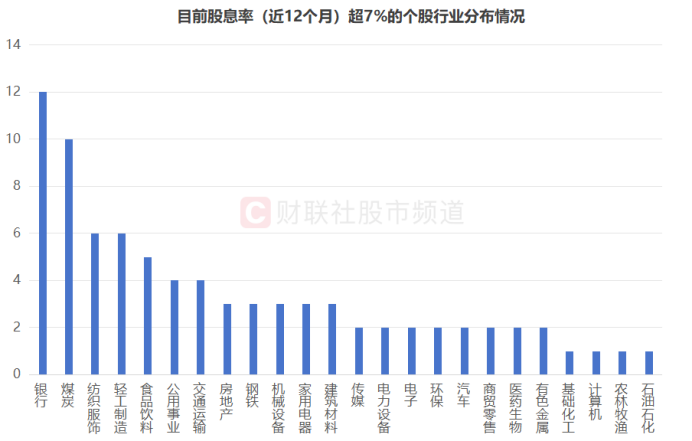 注:目前股息率(近12个月)超7%的个股行业分布情况(截至4月11日收盘)