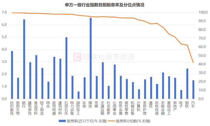 注:申万一级行业指数目前股息率及分位点情况(截至4月11日收盘)