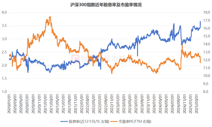 注:沪深300指数近期股息率及市盈率情况(截至4月11日收盘)