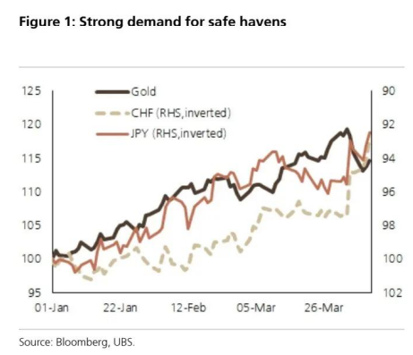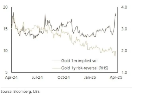 瑞银认为,关税紧张局势升级、不确定性持续高企,以及对经济衰退 / 滞胀的担忧加剧,应会进一步增强投资者对黄金作为避险资产的需求。