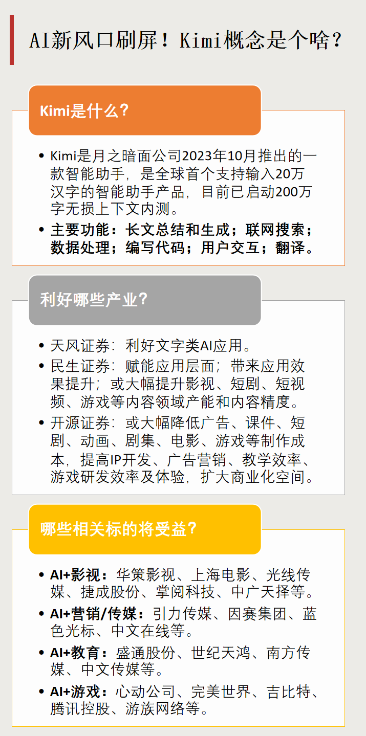 3月20日,AI应用主线引爆A股,Kimi概念股掀起涨停潮。