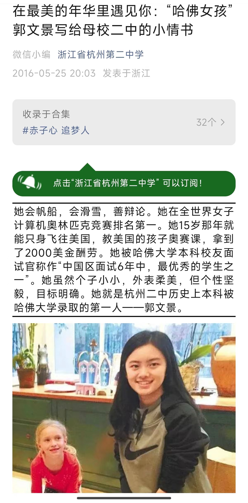 不过可以确认的是,郭文景确为杭州二中的学生,是一名理工科学霸。