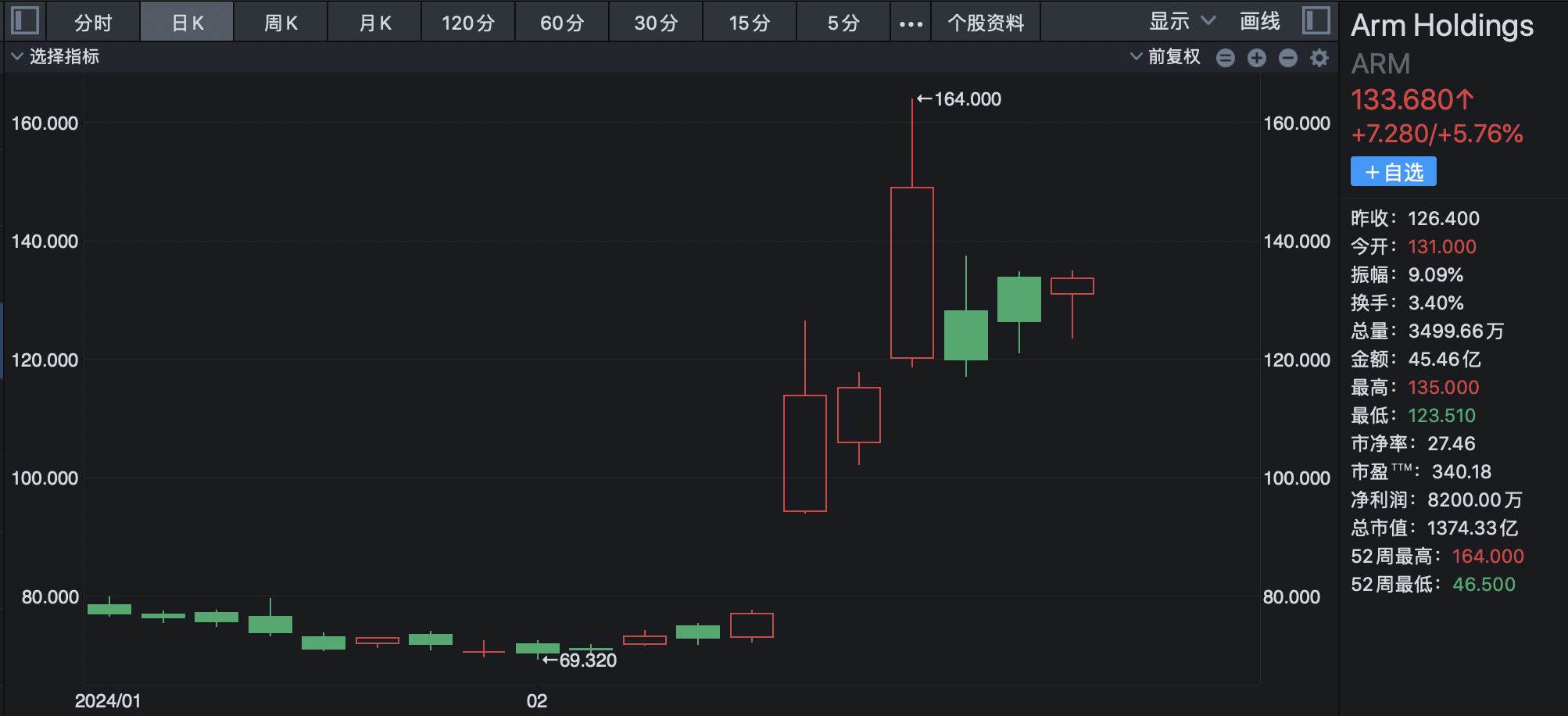 美股芯片龙头ARM股价4日暴涨1.3倍!A股小伙伴有这些
