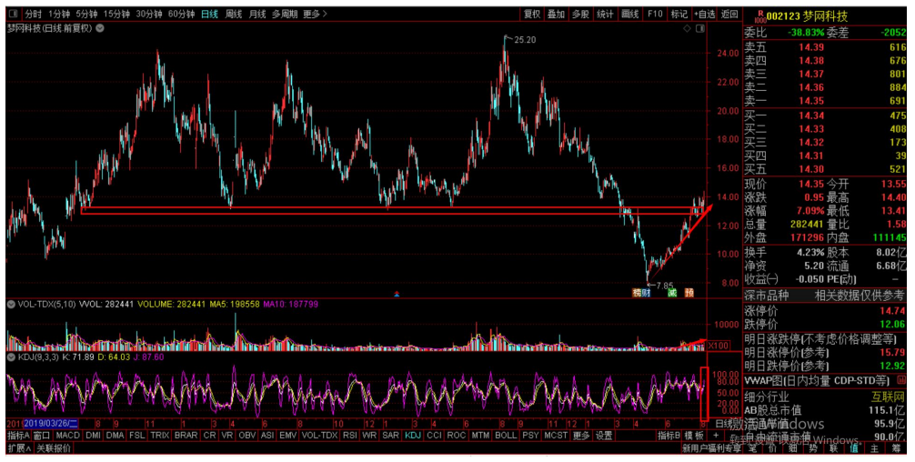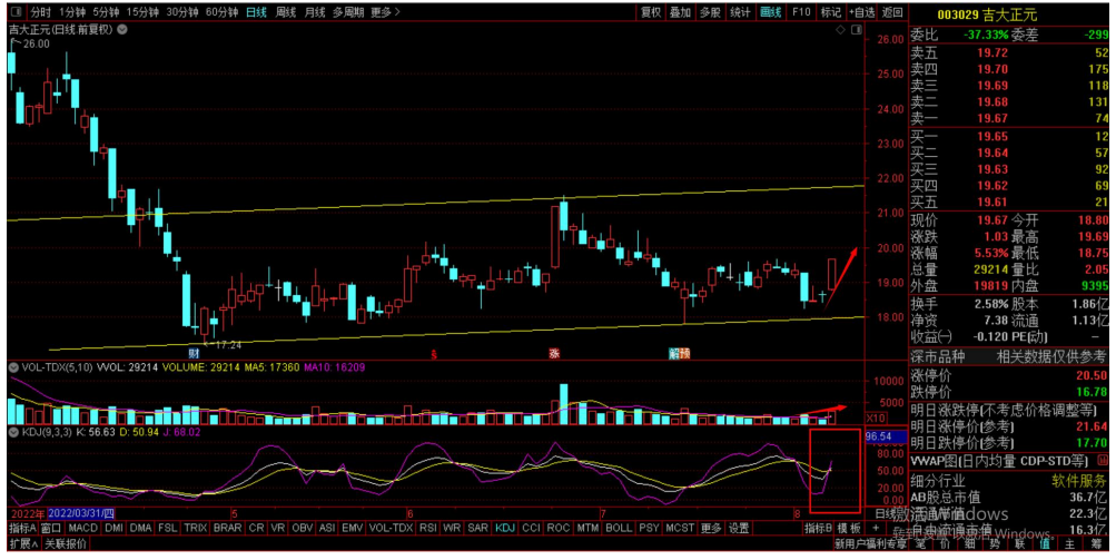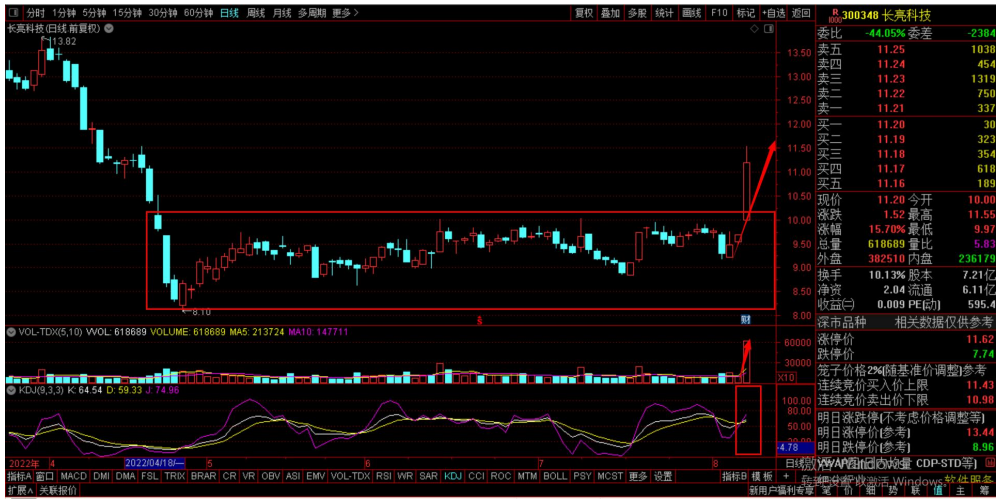 技术走势看,KDJ金叉,成交量明显放大,股价长阳突破整理平台,或将起飞!