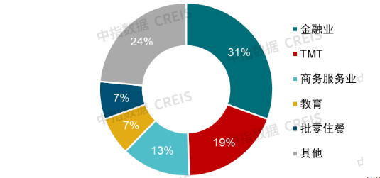 图:2025年一季度代表城市写字楼租赁成交案例租户行业占比