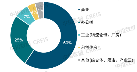 以商业地产(办公物业、消费基础设施、综合体、酒店类)为底层资产的产品发行金额为264亿元,占比69%。其中以办公物业为底层资产的产品占比35%,较上年同期提升5个百分点;以消费基础设施、综合体、酒店为底层资产的产品占比34%,较上年同期下降12%;底层资产为混合资产的产品占比20%,较上年提升11个百分点;底层资产为产业园、租赁住房、物流仓储及其他物业类型的产品占比11%,较上年下降5个百分点。