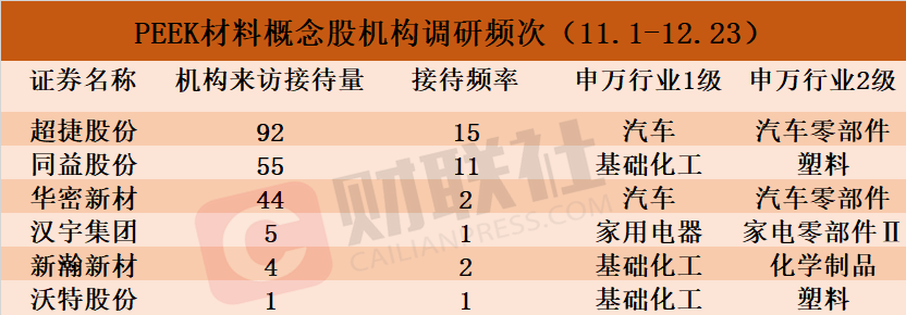 机构密集调研PEEK材料概念股!龙头本周股价大涨近9成