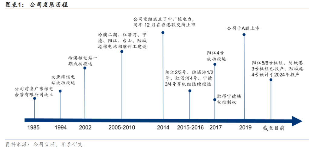 研报菌简评:公司前身为1985年成立的广东核电合营有限公司,1994年大亚湾核电站成功投运,实现中国大型商用核电站的起步。