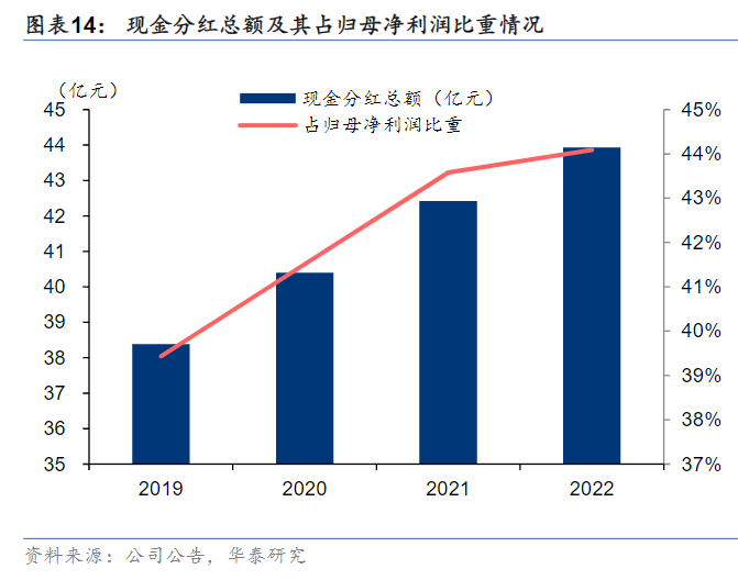 研报菌简评:据公告公司2019-2022年现金分红总额占归母净利润比重为40.55%/42.25%/43.58%/44.09%,