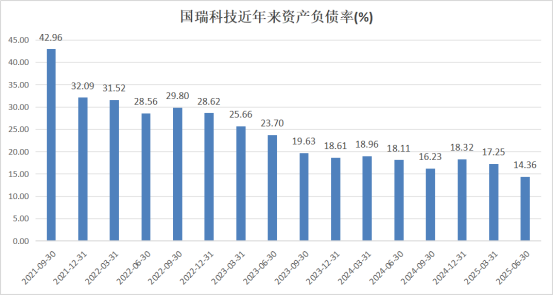 财报数据显示,截至2025年6月30日,国瑞科技总资产达14.41亿元,较去年末大增17.24%;净资产12.33亿元,较去年末大增22.99%;资产负债率14.36%,较去年末下降3.96个百分点,创出2019年来新低。