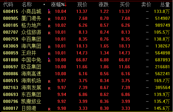 免税概念盘中发力上扬,截至收盘,小商品城、格力地产、众信旅游、中百集团、王府井、中国中免等涨停。