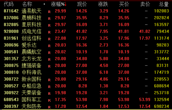 军工板块今日强势拉升,截至收盘,爱乐达、晨曦航空、北方长龙、中科海讯、新余国科、中船应急等20%涨停,国科军工涨超17%。