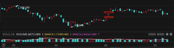 唐元懋分析,4月24日的低位形成颈线支撑,T合约108.6元、TL合约119.2 元是关键支撑位。