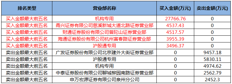 四川长虹今天涨停。盘后数据显示,2个机构出现在龙虎榜单上,合计净买入2.28亿元;沪股通专用席位买入3496.37万元,同时卖出5830.11万元;财通证券股份有限公司普陀山证券营业部买入4517.57万元;广发证券股份有限公司北京建外大街证券营业部卖出9457.18万元。