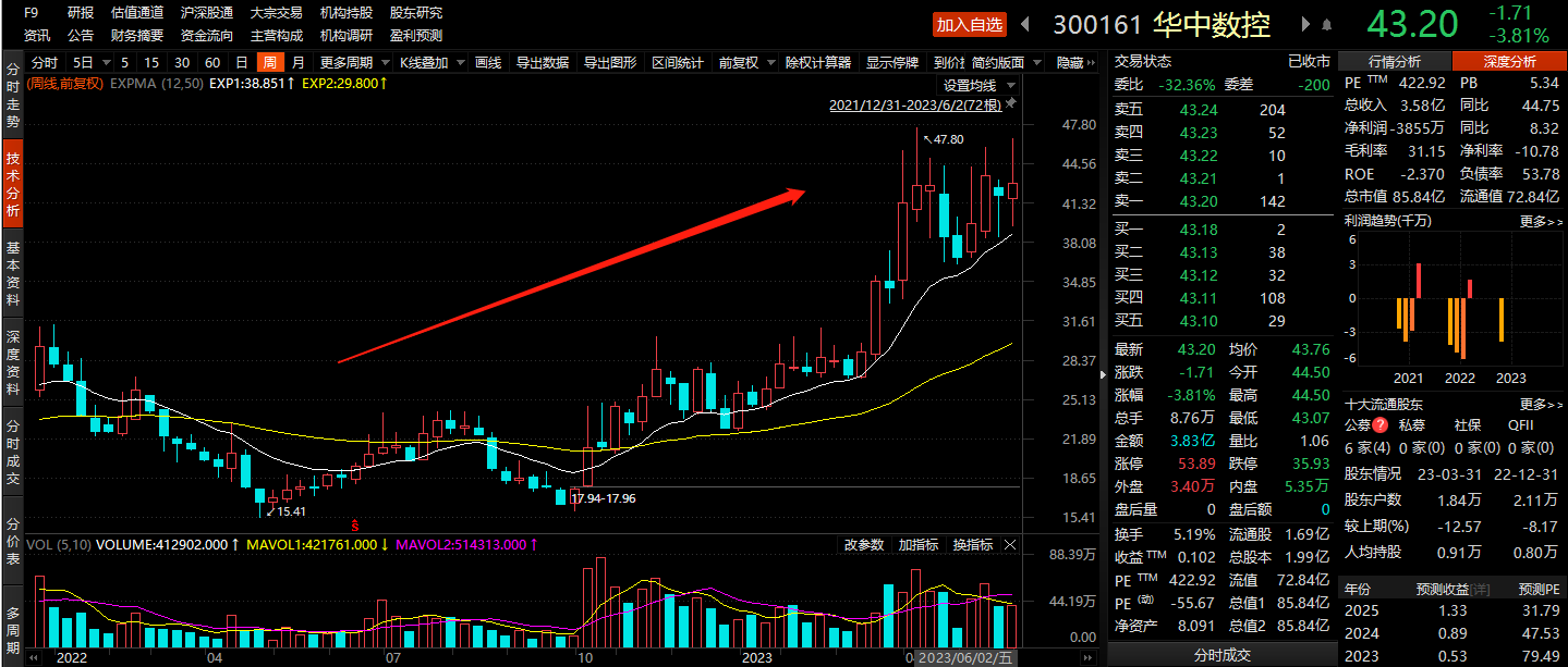 华中数控股价走势周线图