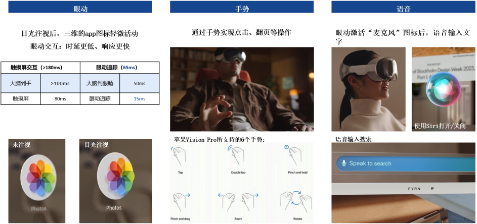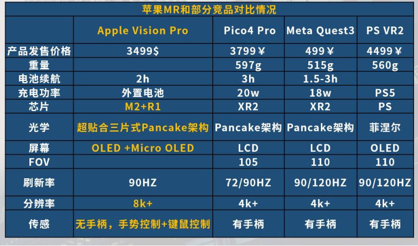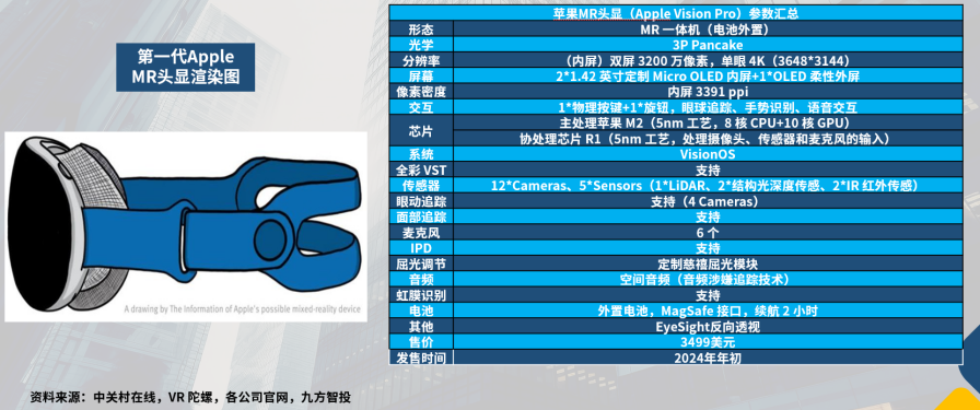 作为苹果第一代“空间计算”产品,苹果MR拥有顶配的硬件参数(Micro-OLED),全新的交互逻辑(手动/眼动追踪)。