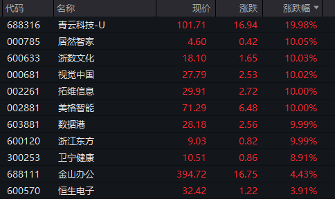 DeepSeek概念股继续上行,青云科技-U、浙数文化、视觉中国等多只股票盘中继续涨停。