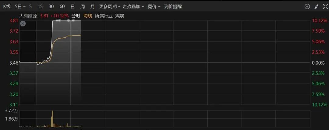 煤炭板块走强,截至发稿,大有能源涨停,云煤能源、辽宁能源、晋控煤业、陕西煤业等涨幅居前。