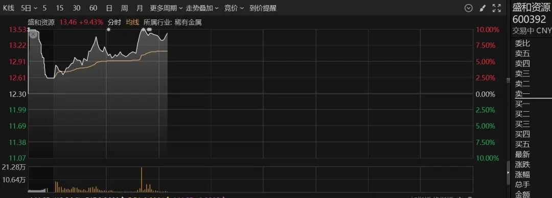 稀土永磁概念异动拉升,盛和资源涨超9%,京运通、广晟有色、中国稀土、天和磁材、银河磁体等涨幅居前。